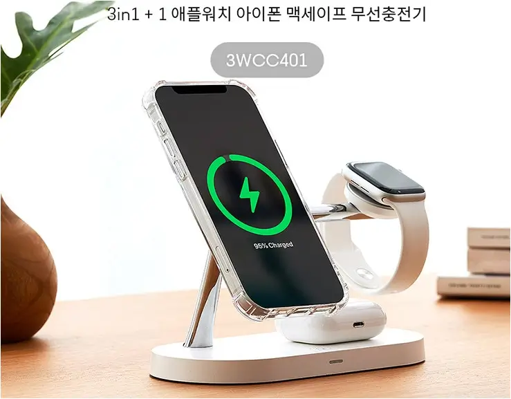 애플 아이폰의 맥세이프 기능으로 인해서 생긴 충전기이며 선이없는것이 특징이라 볼수있습니다.