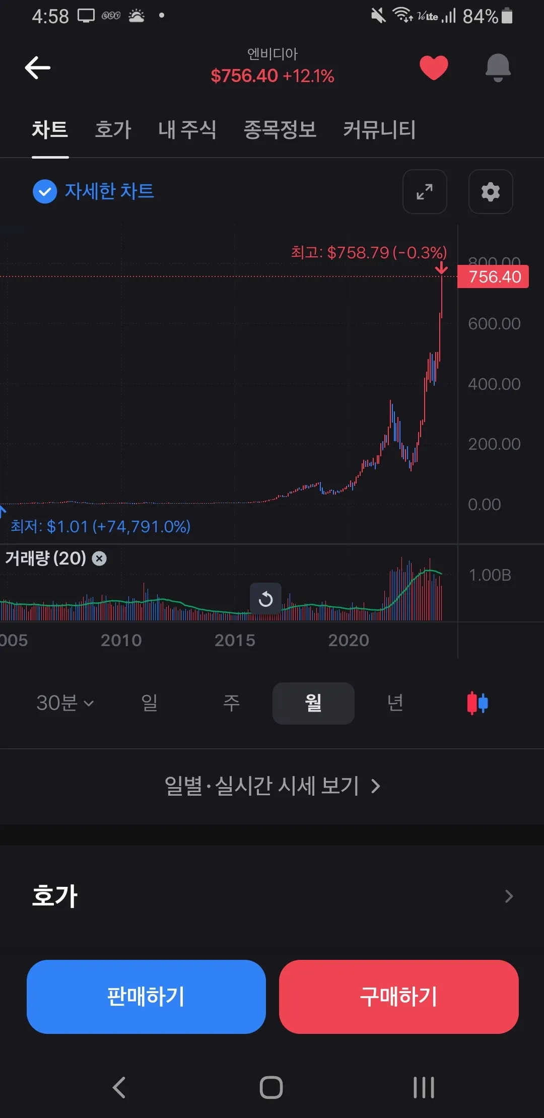 이 앱을 통해 엔비디아 주식의 실시간 가격을 확인하고, 차트를 분석할 수 있습니다.