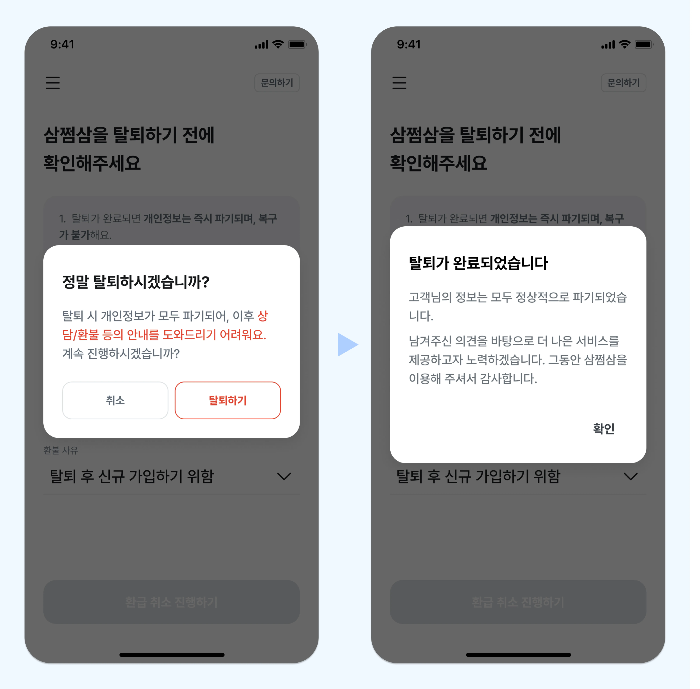 환급금 수령 확인 후 회원 탈퇴를 진행하시면 됩니다.