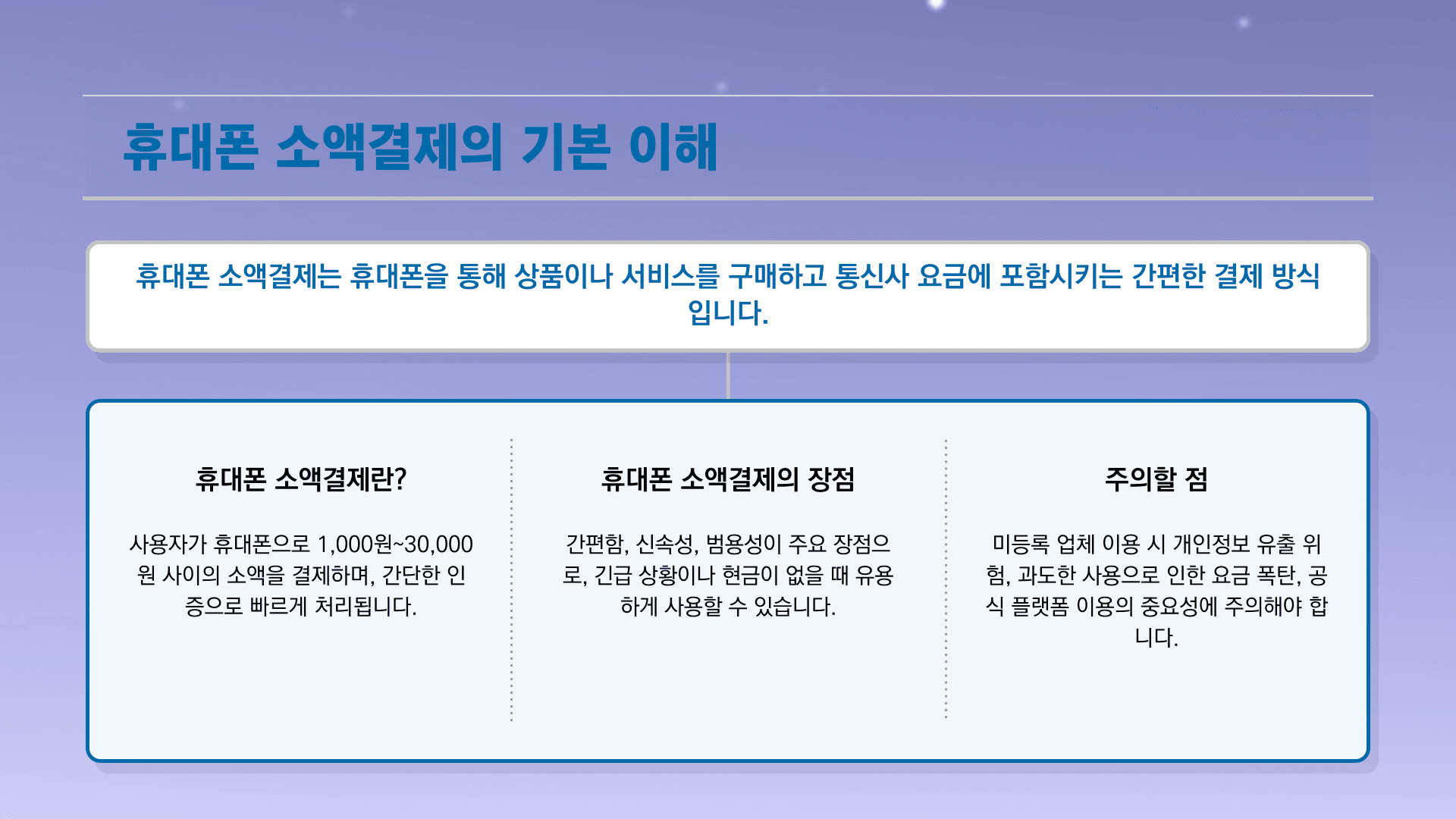 앞으로도 소액결제를 현명하게 활용하여 경제적 부담을 줄이고, 안전한 소비를 이어나가시길 바랍니다.