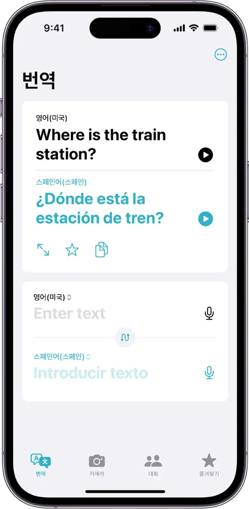 번역 앱에서 택스트, 음성 및 대화를 지원되는 모든 언어로 번역할 수 있습니다.