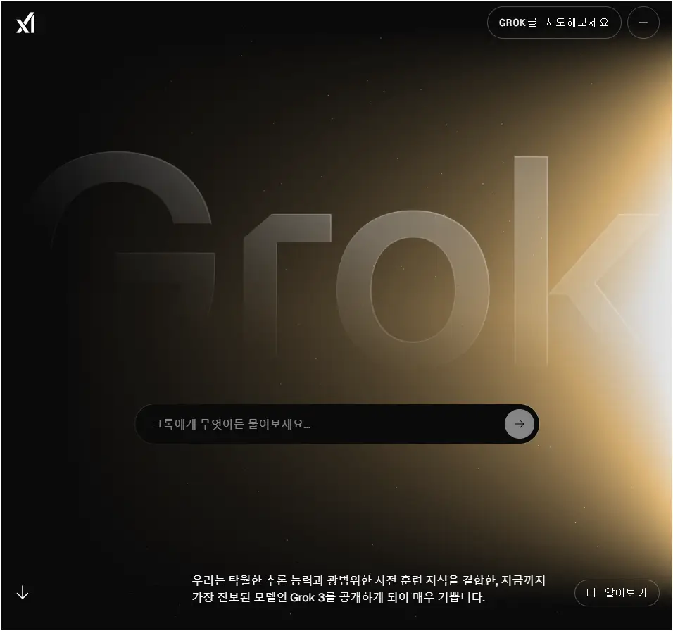 아래의 링크로 접속하여 Grok 홈페이지로 들어갑니다.