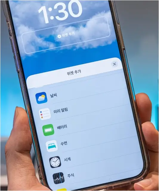 그리고 화면 하단에 있는 "+" 버튼을 누르면 사용 가능한 위젯 목록이 나타납니다.