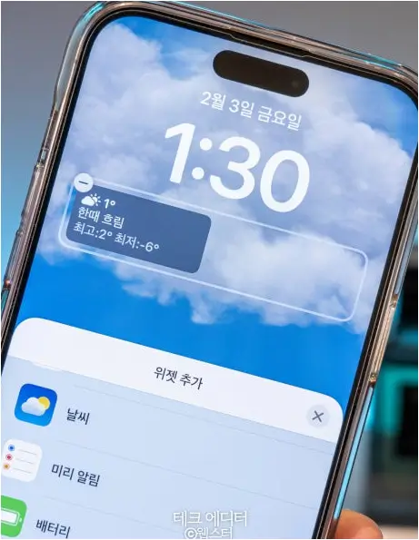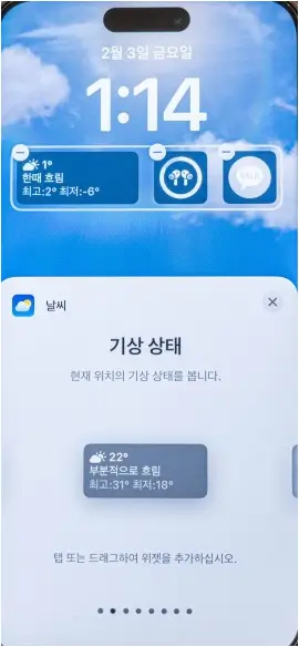 그래서 저는 '위젯 추가 '기능을 활용하여 '기상 상태'를 표시해 주는 기본 Widget 별도로 설정하였습니다.