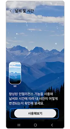 갤럭시 S24에 새롭게 추가된 날시날씨 및 시간 배경화면 설정은 잠금 화면으로 사용되는 이미지에 3D 애니메이션 날씨 효과를 추가합니다.