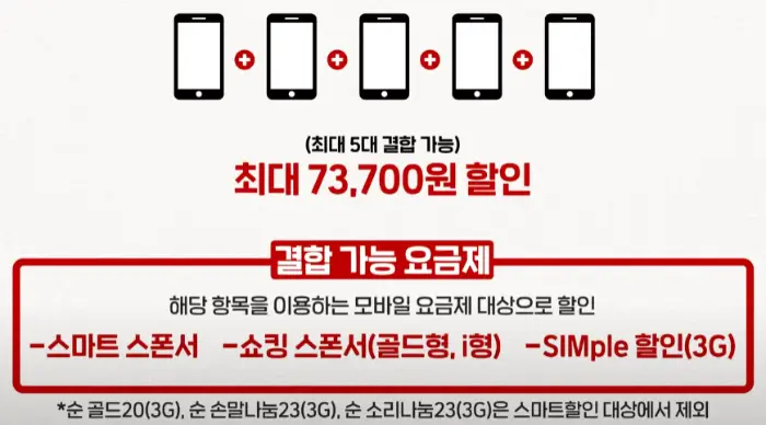 나눠서 할인받는 방법 대신 대표 회선에 몰아서 할인받을 수도 있습니다.