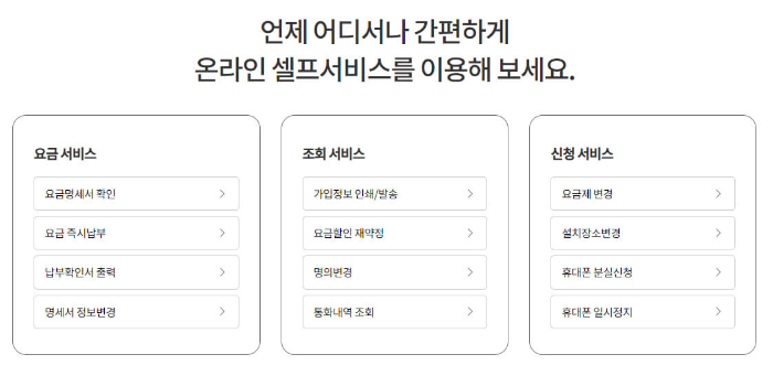 KT는 고객의 편의를 위해 계정 관리, 요금결제, 고객 지원 등 다양한 온라인 서비스를 제공합니다.