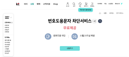 도용된 번호의 문자메시지는 차단하고 번호가 도용되지 않도록 차단하는 서비스입니다.