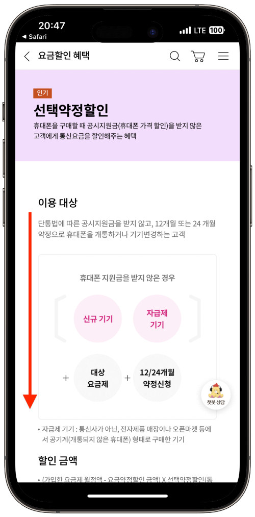 혜택대상 / 가입조건 / 요금 할인혜택 확인하세요.